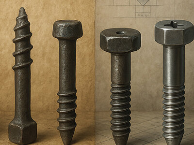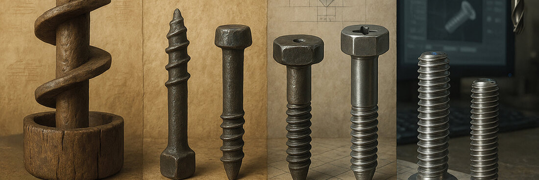 Przez kolejne stulecia rzemieślnicy rozwijali techniki łączenia drewna i metalu za pomocą prostych śrub. Proces ich wytwarzania był jednak żmudny, kosztowny i mało precyzyjny. Każdy element był unikatowy, co oznaczało brak kompatybilności i ograniczone możliwości zastosowania w bardziej złożonych konstrukcjach.