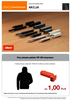 Nasi specjaliści produktowi wraz z dostawcami opracowują regularnie specjalne oferty promocyjne. Od narzędzi i maszyn przez sprzęt do zabudowy kuchennej, aż po okucia i drzwi wewnętrzne. Bieżące foldery promocyjne w fromacie PDF są do Państwa dyspozycji. W przypadku pytań odnośnie produktów, proszę zwrócić się do Państwa bezpośrednich opiekunów lub doradców technicznych w siedzibie firmy, którzy udzielą szczegółowych informacji.