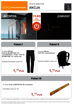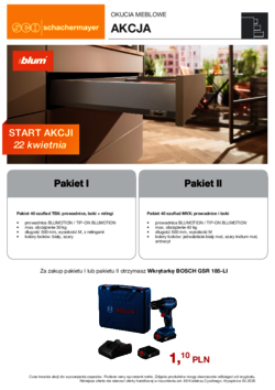 Nasi specjaliści produktowi wraz z dostawcami opracowują regularnie specjalne oferty promocyjne. Od narzędzi i maszyn przez sprzęt do zabudowy kuchennej, aż po okucia i drzwi wewnętrzne. Bieżące foldery promocyjne w fromacie PDF są do Państwa dyspozycji. W przypadku pytań odnośnie produktów, proszę zwrócić się do Państwa bezpośrednich opiekunów lub doradców technicznych w siedzibie firmy, którzy udzielą szczegółowych informacji.