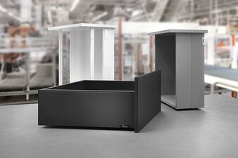 Unikalne wzornictwo MERIVOBOX łączy w sobie cztery innowacje: platformę upraszczającą produkcję, wyjątkowy profil prowadnicy, minimalistyczny design oraz przemyślaną koncepcję montażu. Koncepcja platf
